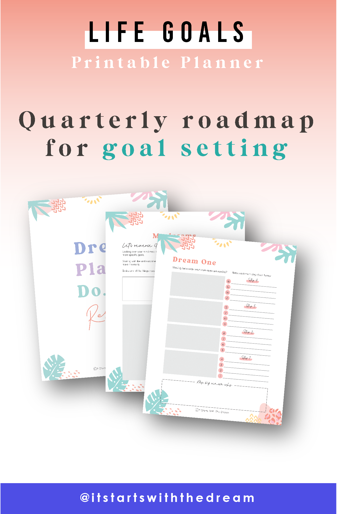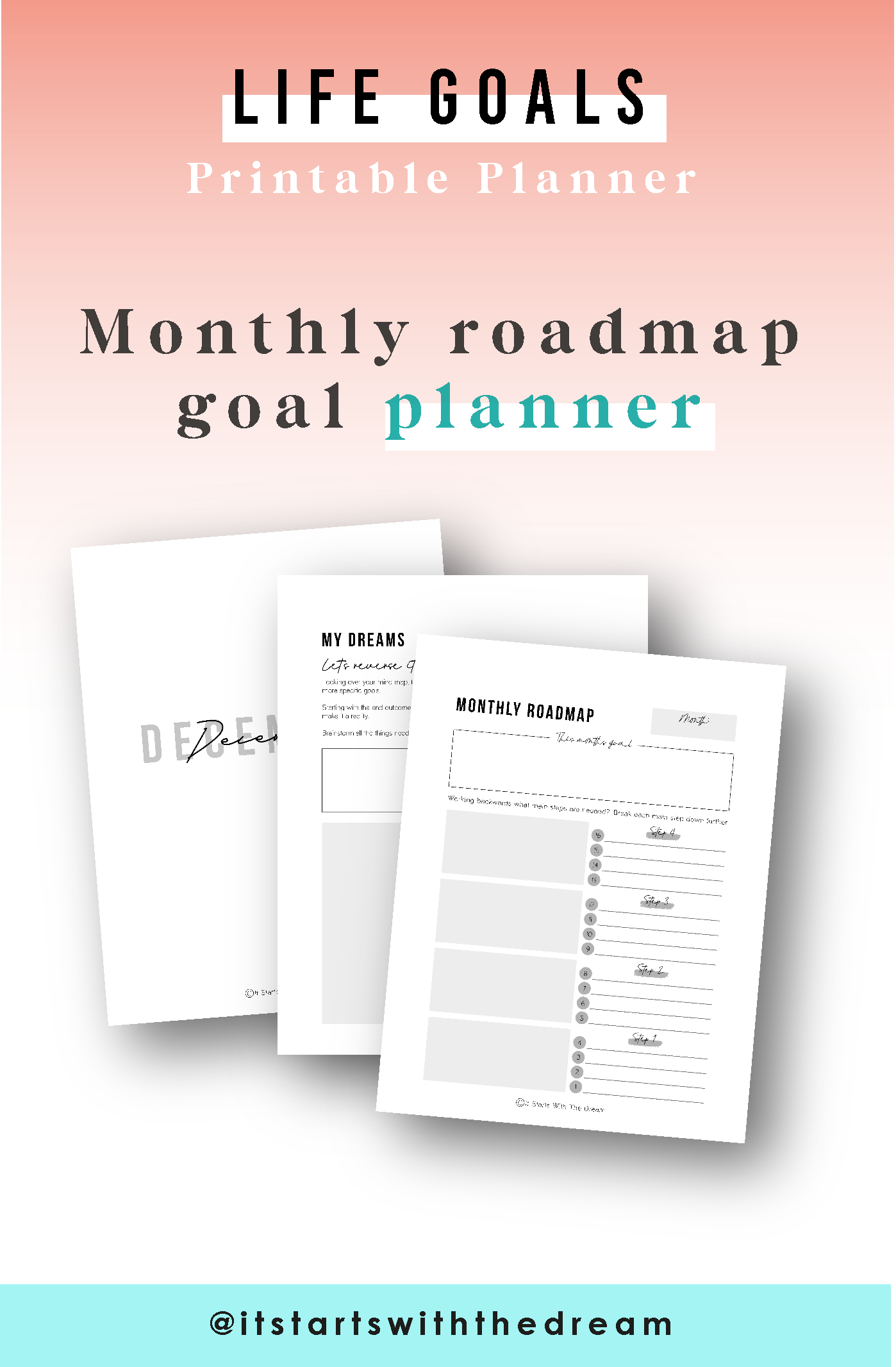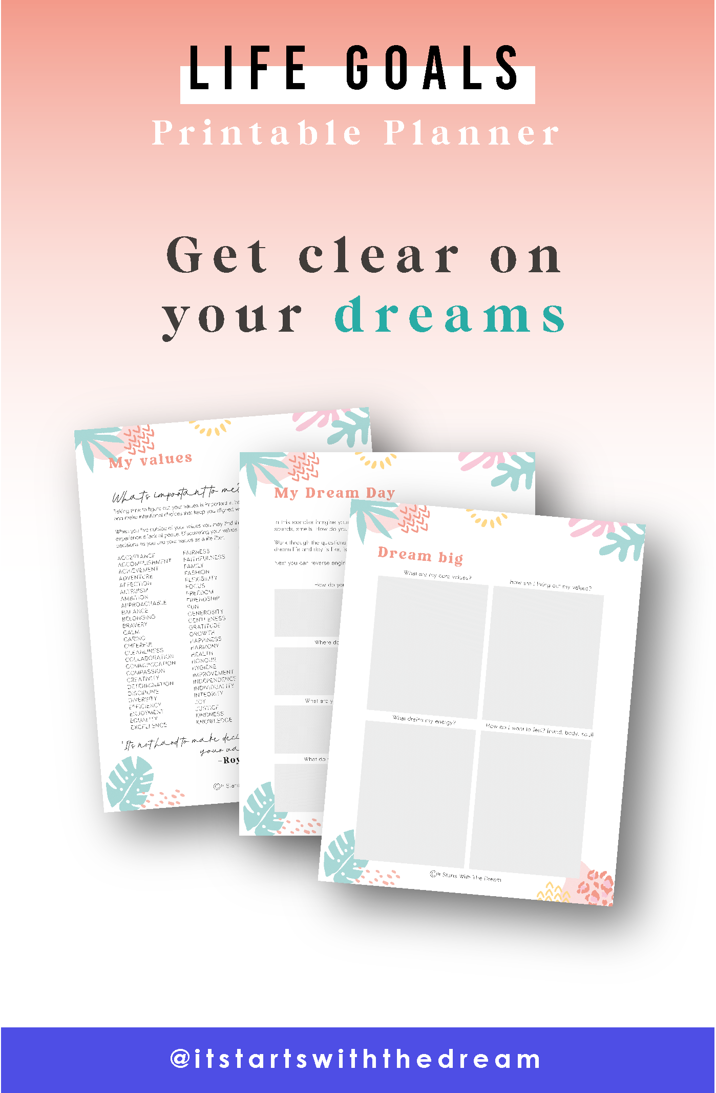Work through this printable planner and workbook and start to dream, be inspired and believe in all the possibilities of life.